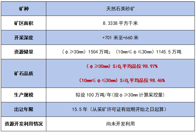 中国粉体网讯 近日,新疆阿勒泰地区自然资源局发布4则天然石英砂采矿权出让公告,分别为新疆福海县147南二区天然石英砂矿、新疆阿勒泰市640台地Ⅱ-3区天然石英砂矿、新疆阿勒泰市640台地Ⅱ-4区天然石英砂矿和新疆吉木乃县穆乎尔岱Ⅰ区南3号天然石英砂矿,资源总量4373.44万吨。